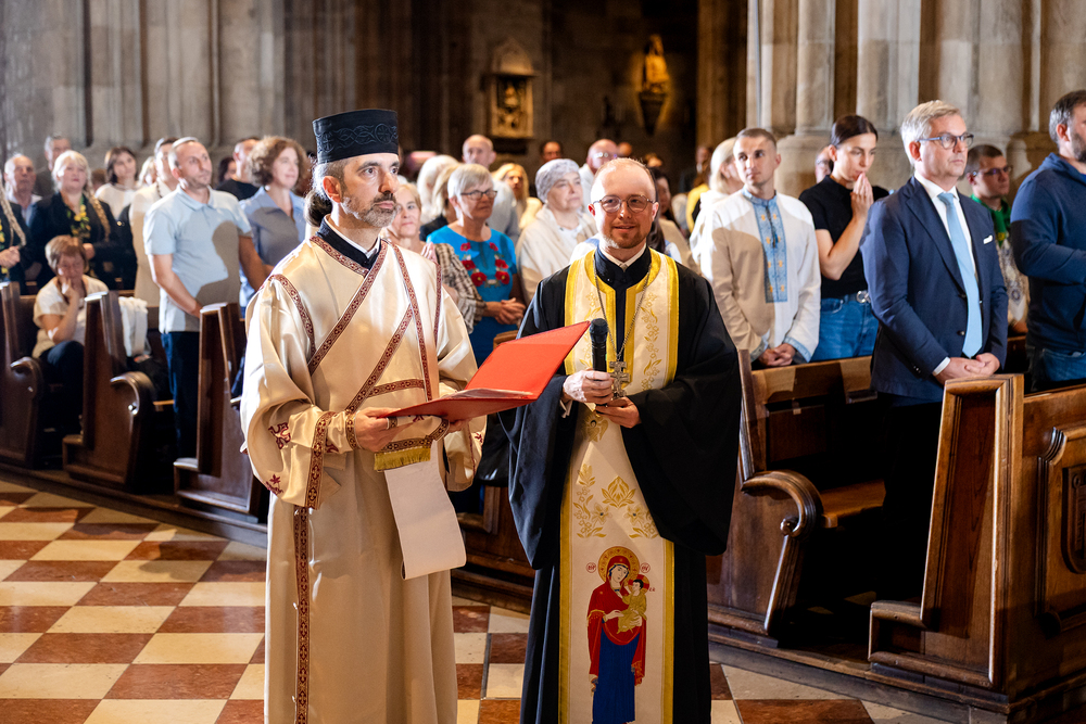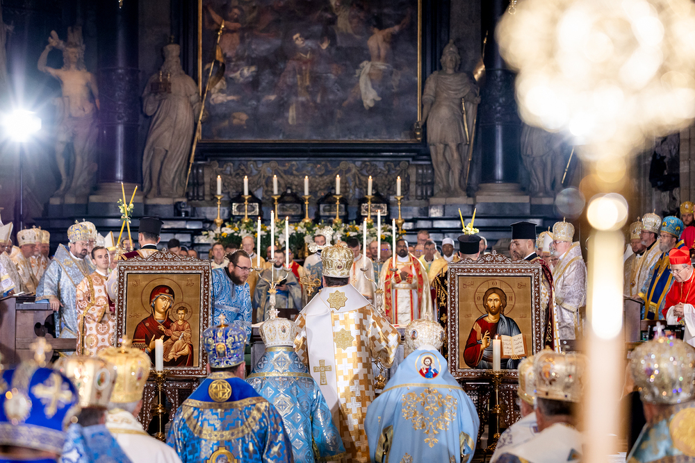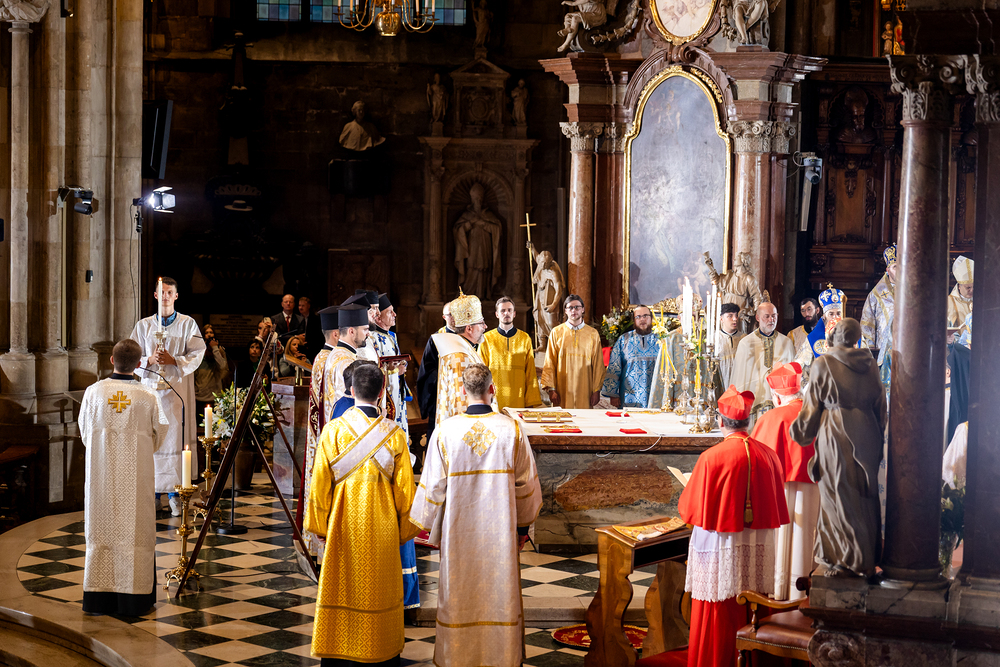 Gottesdienst im byzantinischen Ritus war Mittwochabend liturgischer Höhepunkt der Wiener Vollversammlung der Bischöfe der katholischen Ostkirchen Europas - Kardinal Schönborn in Predigt: "In der Liturgie sind wir ganz besonders mit dem Himmel verbunden", gerade in Zeiten des Krieges und der Not. Wir waren mit der Kamera dabei.
